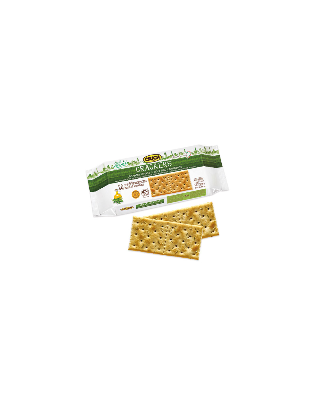 Ingredientes: Harina de trigo, aceite de oliva virgen extra (10%), regulador de la acidez: (bicarbonato de sodio), sal, romero (0,6%), masa madre (0,6%) (trigo y cebada), harina de cebada malteada, levadura de cerveza, aroma natural.